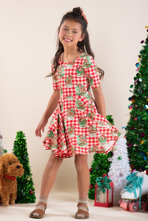 Joy to the world the Reindeer Joy Mabel Dress is here! Made from 95% Cototn, 5% Elastane Jersey