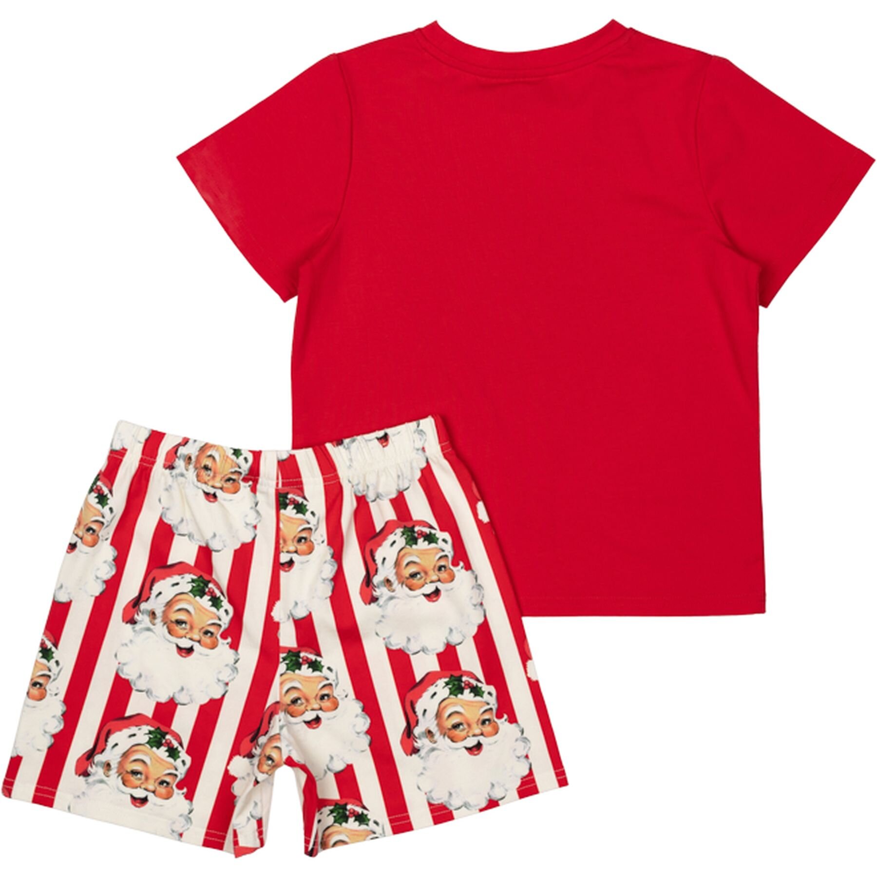 Celebrate Christmas with the Santa Stripe PJ Set, featuring a vintage Santa print and a festive quote on a red base. Made from soft 95% Cotton and 5% Elastane Jersey, with a boxy tee and elastic-waisted shorts for comfort.