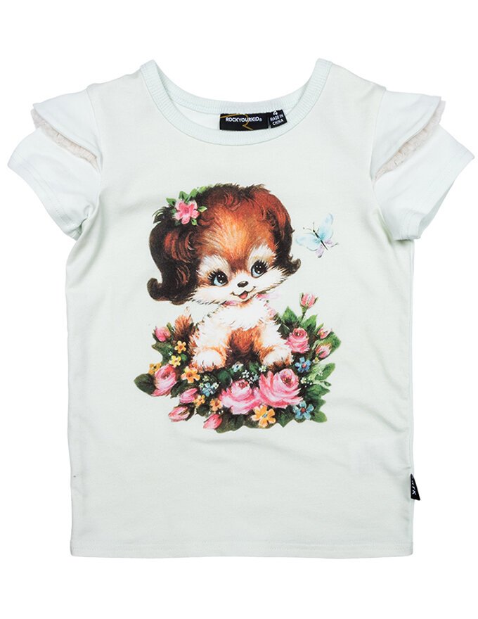 It's vintage puppy heaven! Your playful little pup will love our 95% Cotton 5% Elastane 180GSM T-Shirt! So comfortable and oh so cute, she will look straight off the pages of a storybook. Can't get enough of our Puppy Love print? Check it out in Pink or try our Puppy Love Circus Dress!