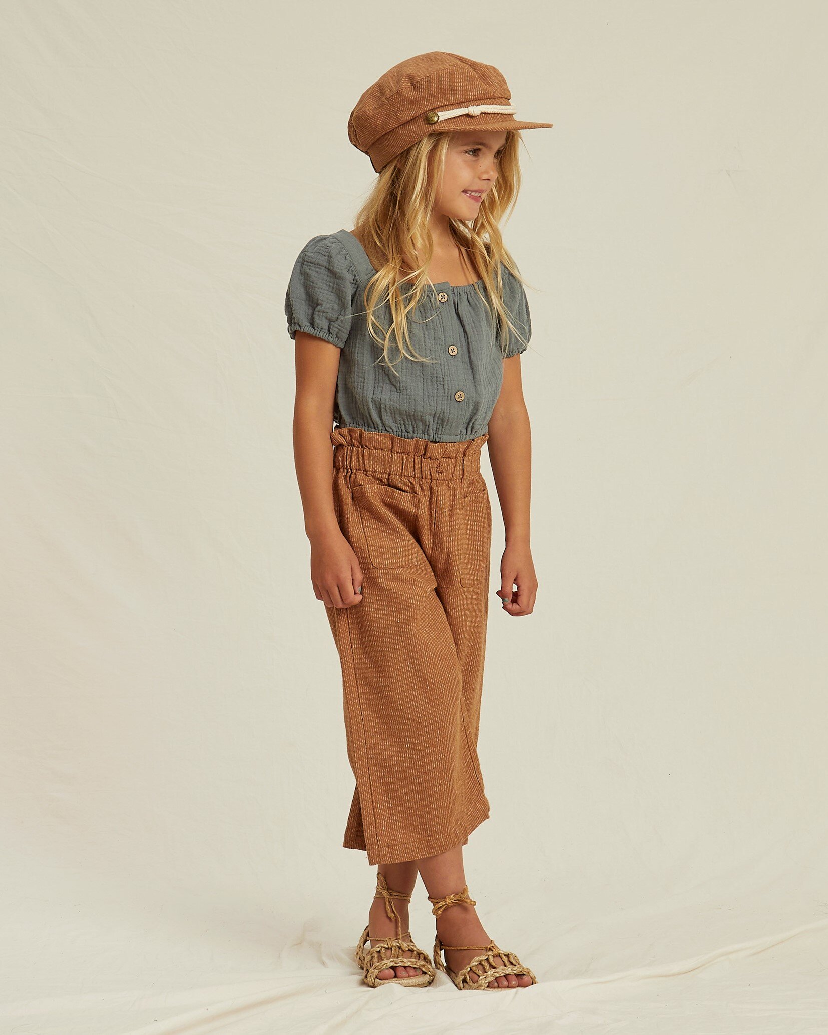 Our new captain hat is the perfect accessory for any outfit while keeping your little one protected from the sun. Color: caramel Made of 70% cotton, 30% linen