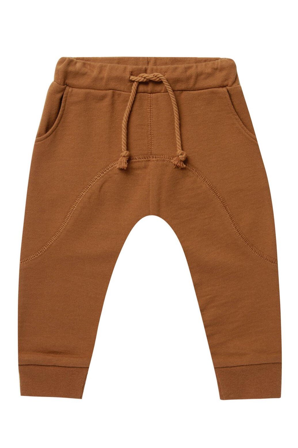 Cozy sweatpants featuring a drawstring and elastic waistband and rib knit band at leg openings to create a secure fit. Pant includes front pockets. Soft washed french terry fabric. Color: rust Machine wash cold. Tumble dry low. Made of 60% cotton, 40% polyester