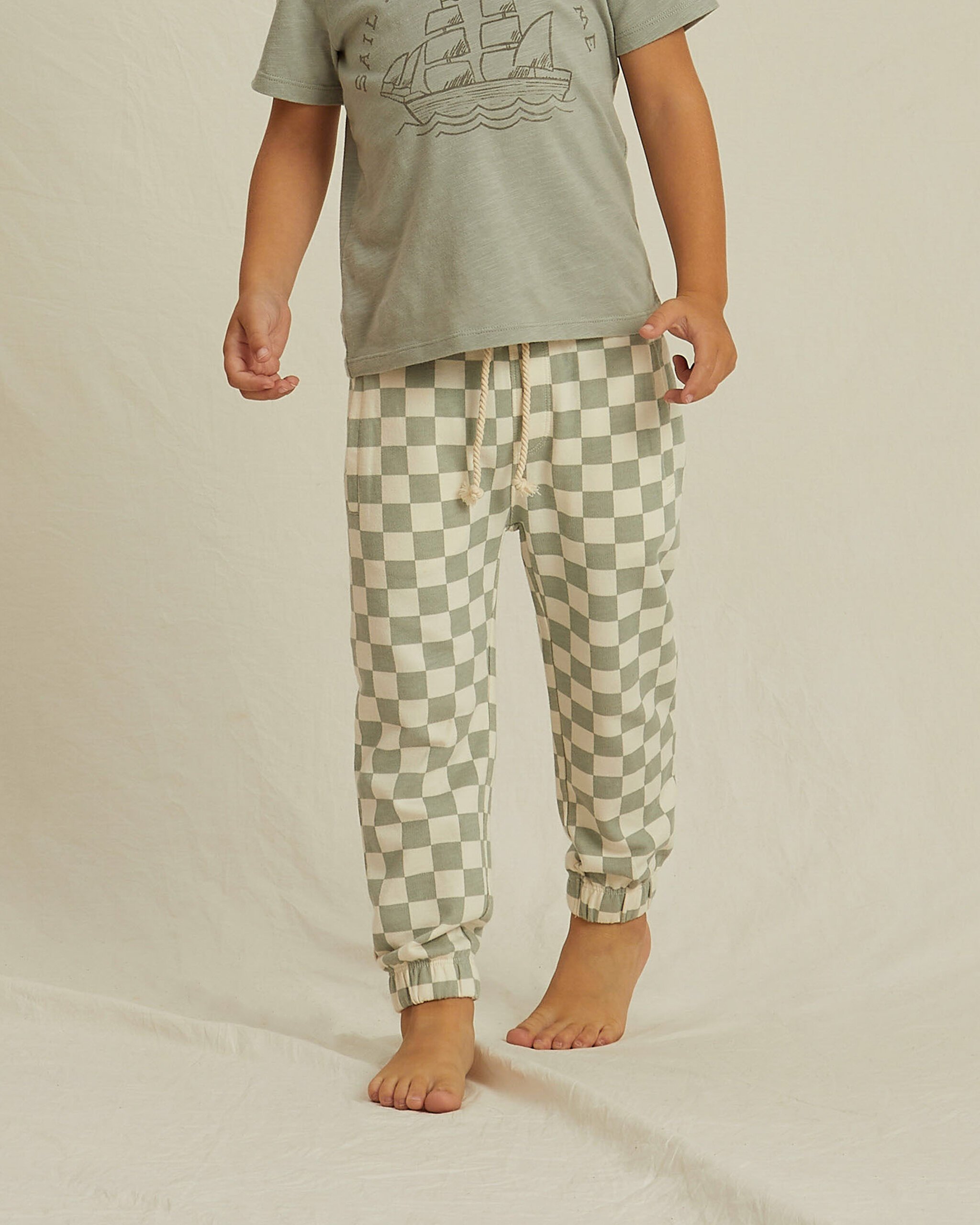Rylee + Cru Jogger Sweatpant - Light Blue Check