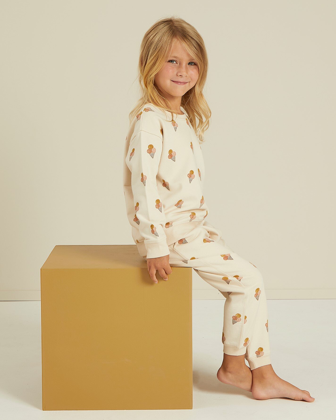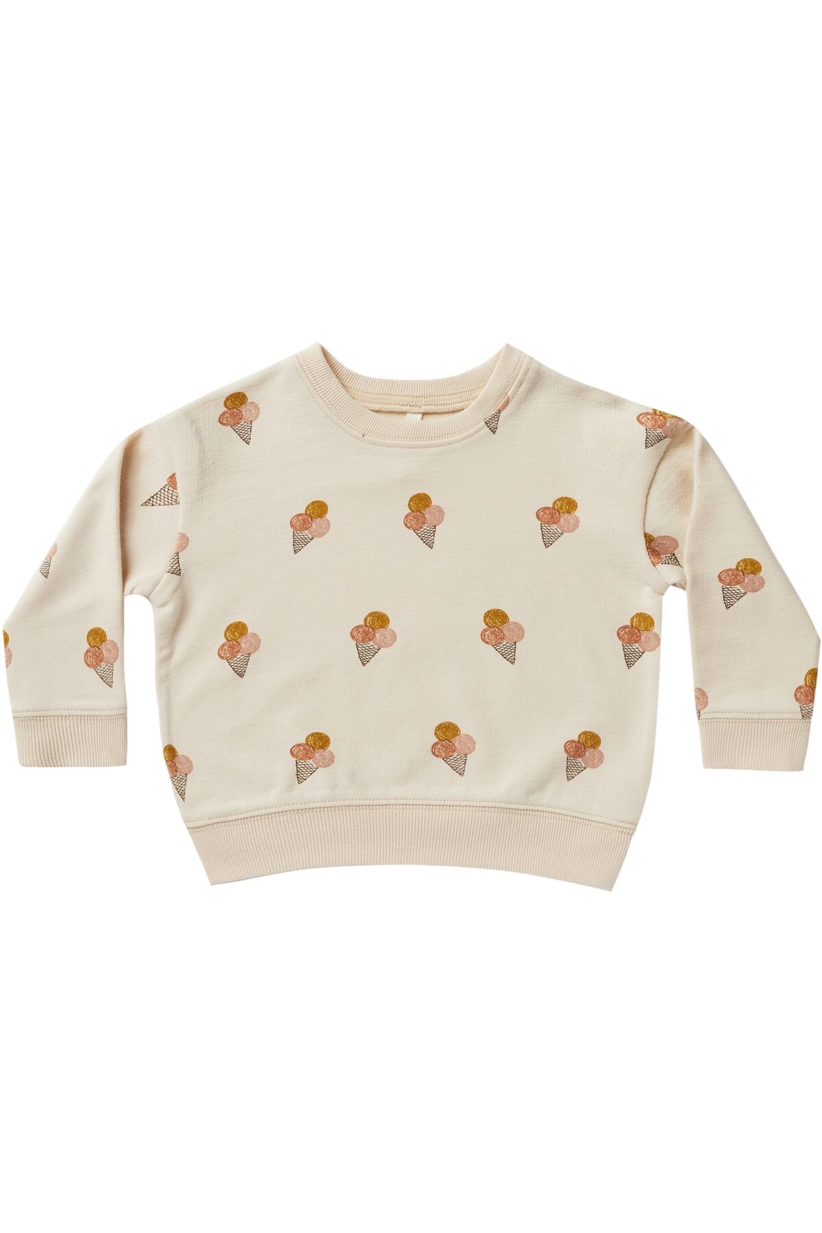 Relaxed fit sweatshirt made of the coziest french terry. This sweatshirt has rib knit cuffs, crew neck and bottom opening. Featuring our ‘ice cream' graphic on natural. Machine wash cold. Tumble dry low. Soft washed, made of 60% Cotton, 40% Polyester