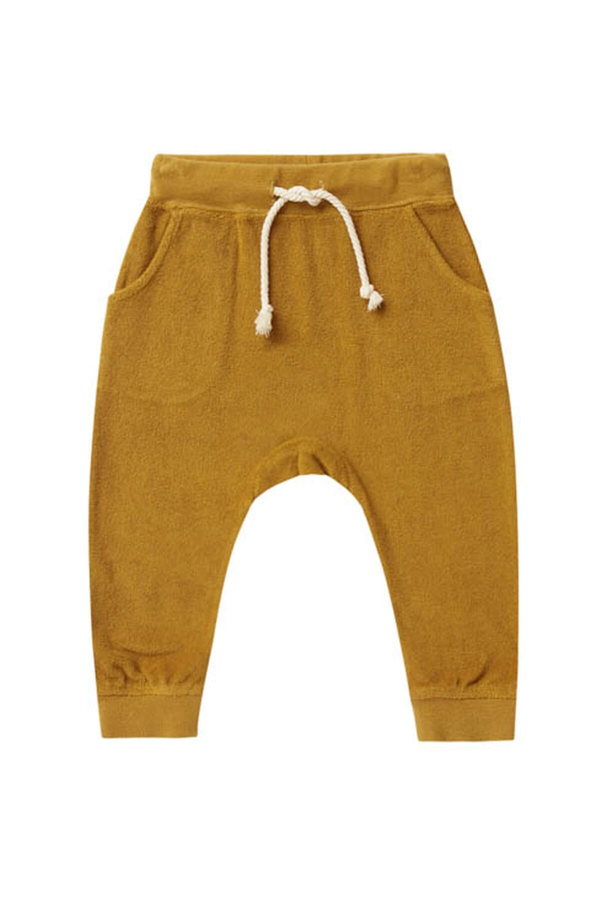 Relaxed fit sweatpants made of the coziest terry fabric. These sweatpants include an elastic and drawstring waistband, with pockets. shown in "gold" Made of 60% cotton, 40% polyester Care: Machine wash cold. Tumble Dry low.