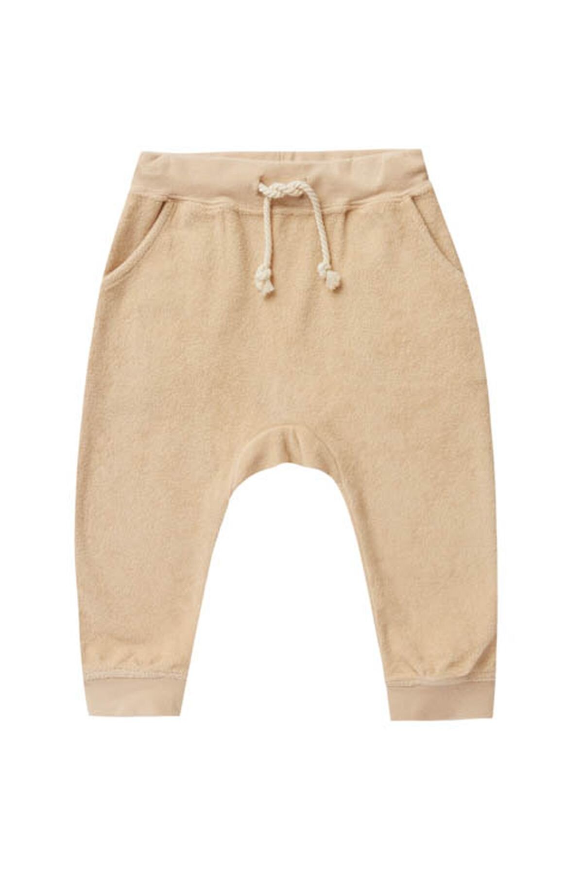 Relaxed fit sweatpants made of the coziest terry fabric. These sweatpants include an elastic and drawstring waistband, with pockets. shown in "shell" Made of 60% cotton, 40% polyester Care: Machine wash cold. Tumble Dry low.