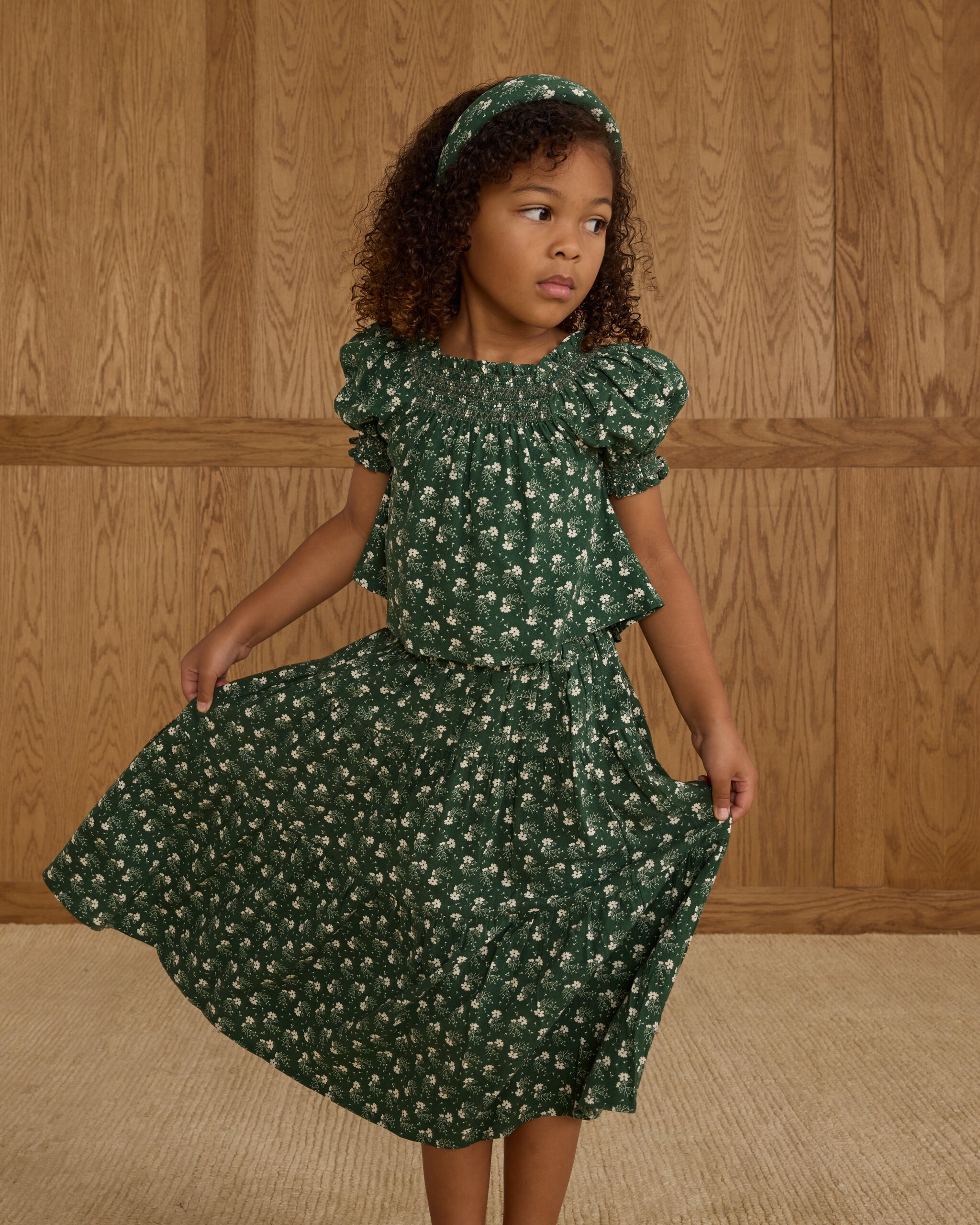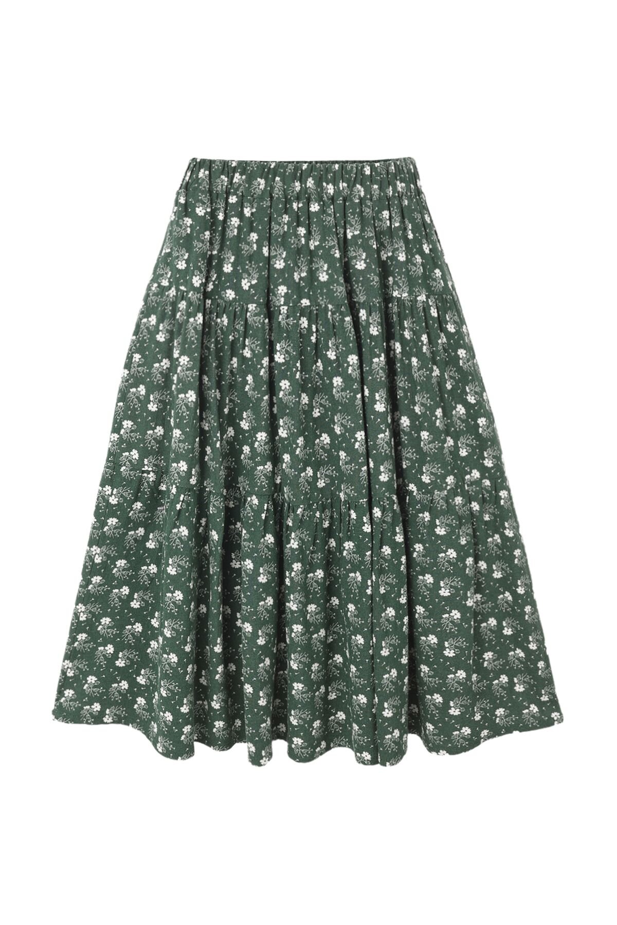 Rylee + Cru Tiered Midi Skirt - Green Ditsy