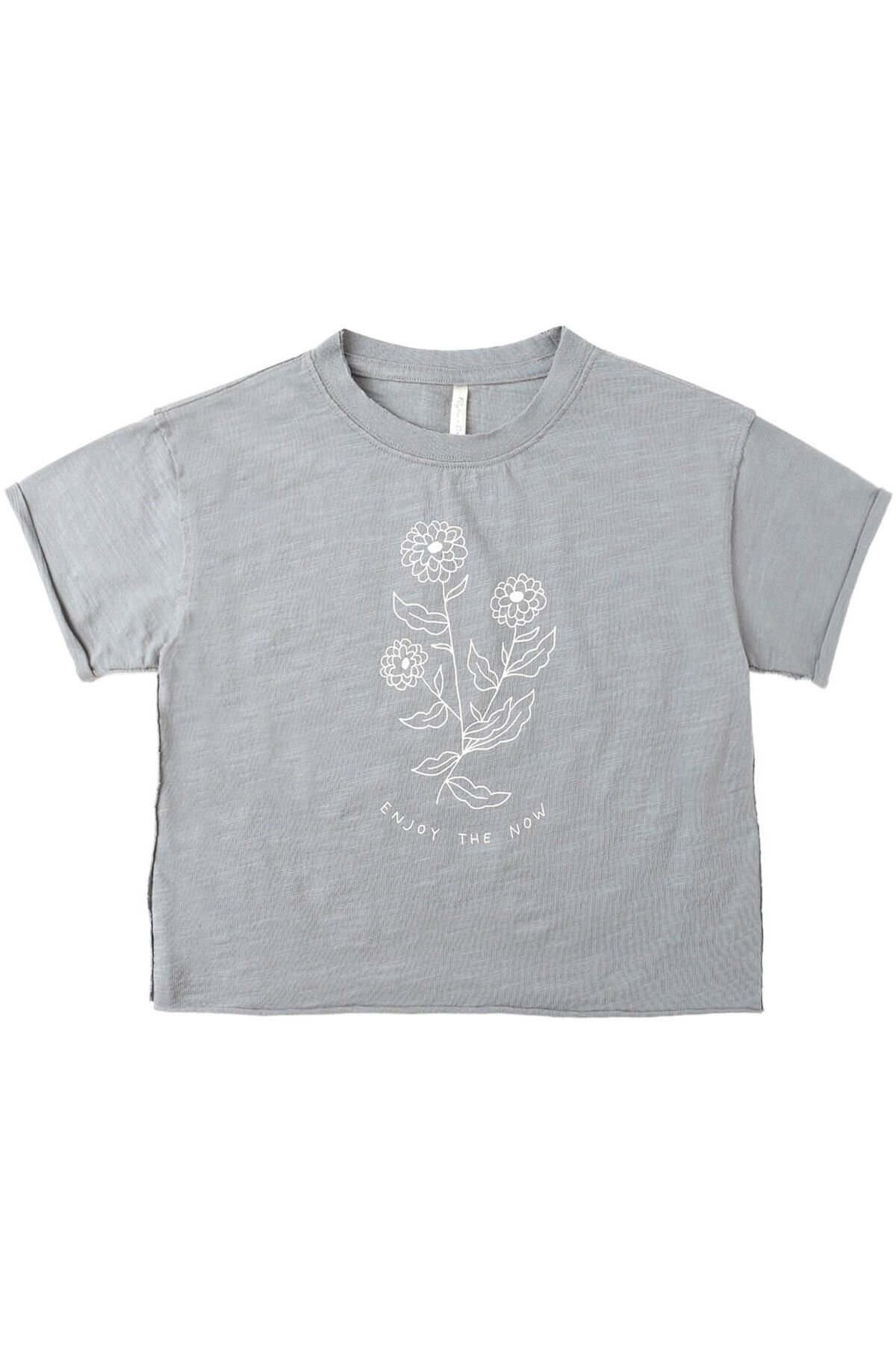 Our Vintage Tee features raw edges for a laid-back, lived-in look. Featuring our 'enjoy the now' spot print on our 'dusty blue' hue.