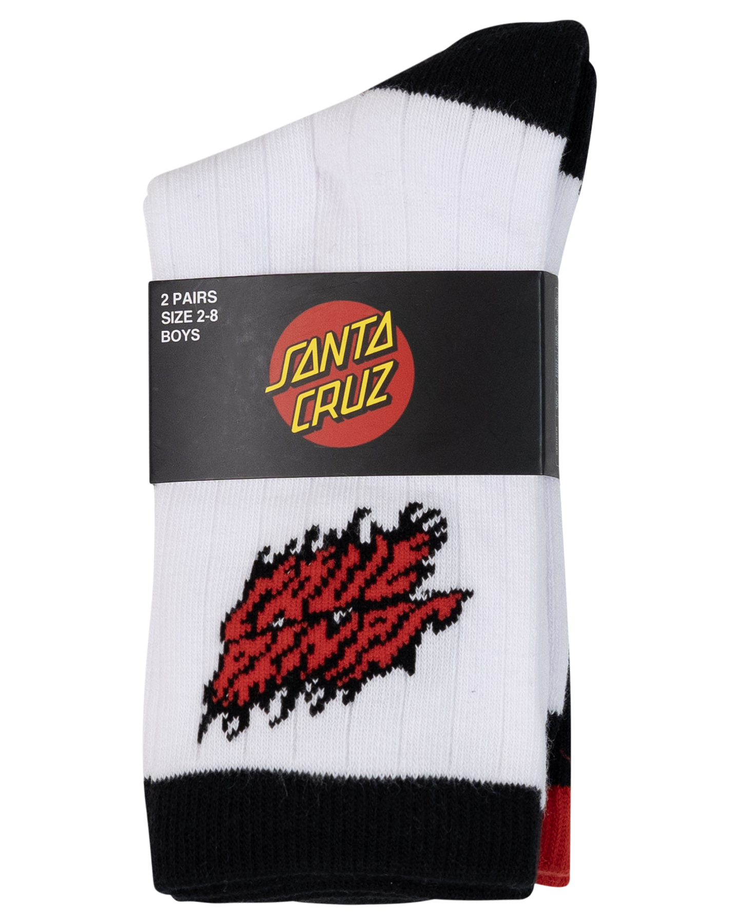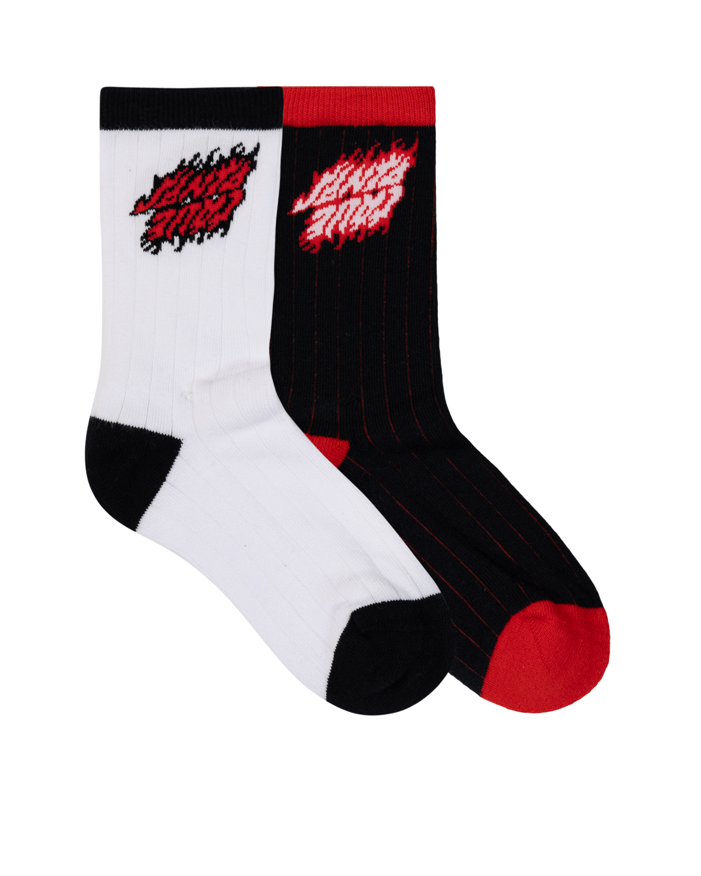 Santa Cruz Flamed Stack Upside Down Crew Sock 2 Pk (Yth 2-8) - Blk/Wht