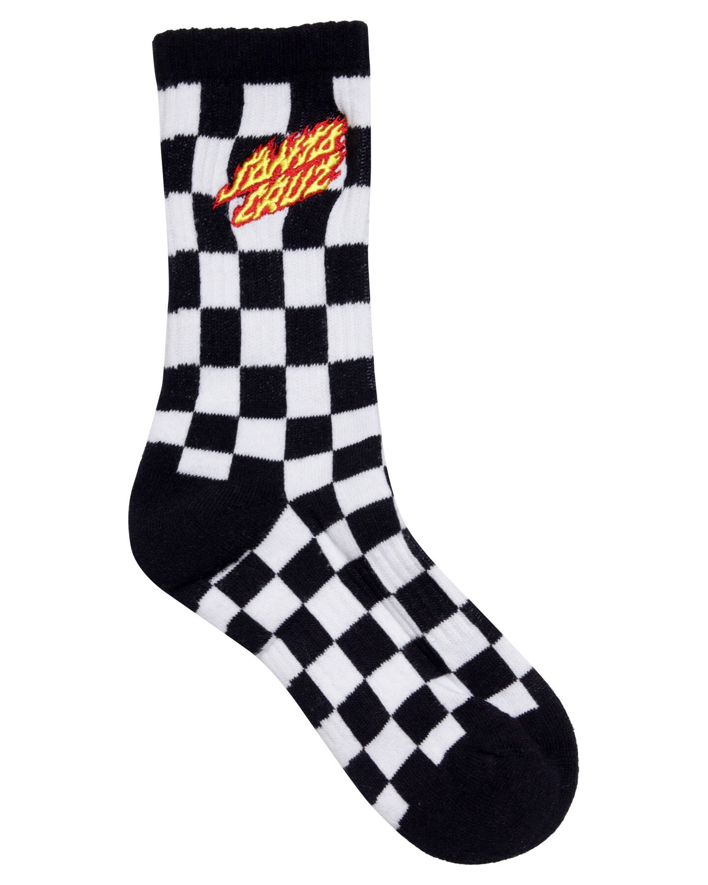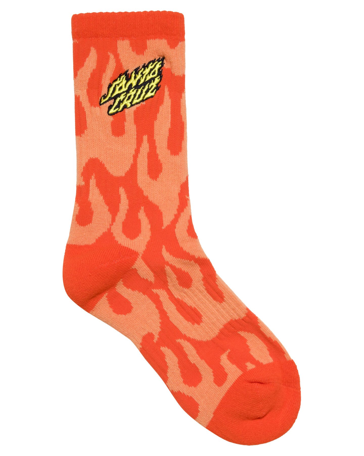 Santa Cruz Flaming Stack Crew Sock 2 Pk (Yth 2-8) - Orange Flame/Blk Chk