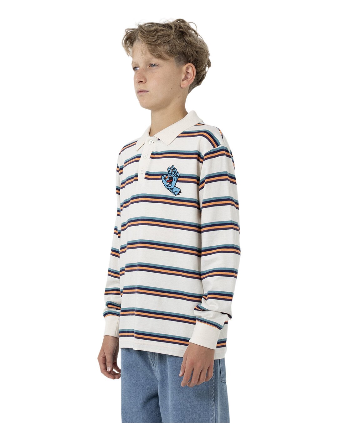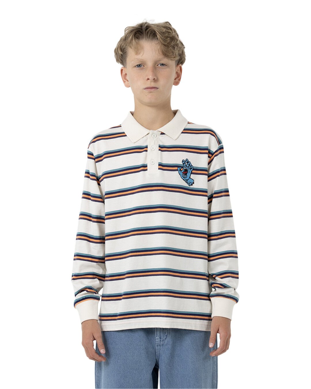 Santa Cruz Horizon L/S Polo Tee - Cream Stripe