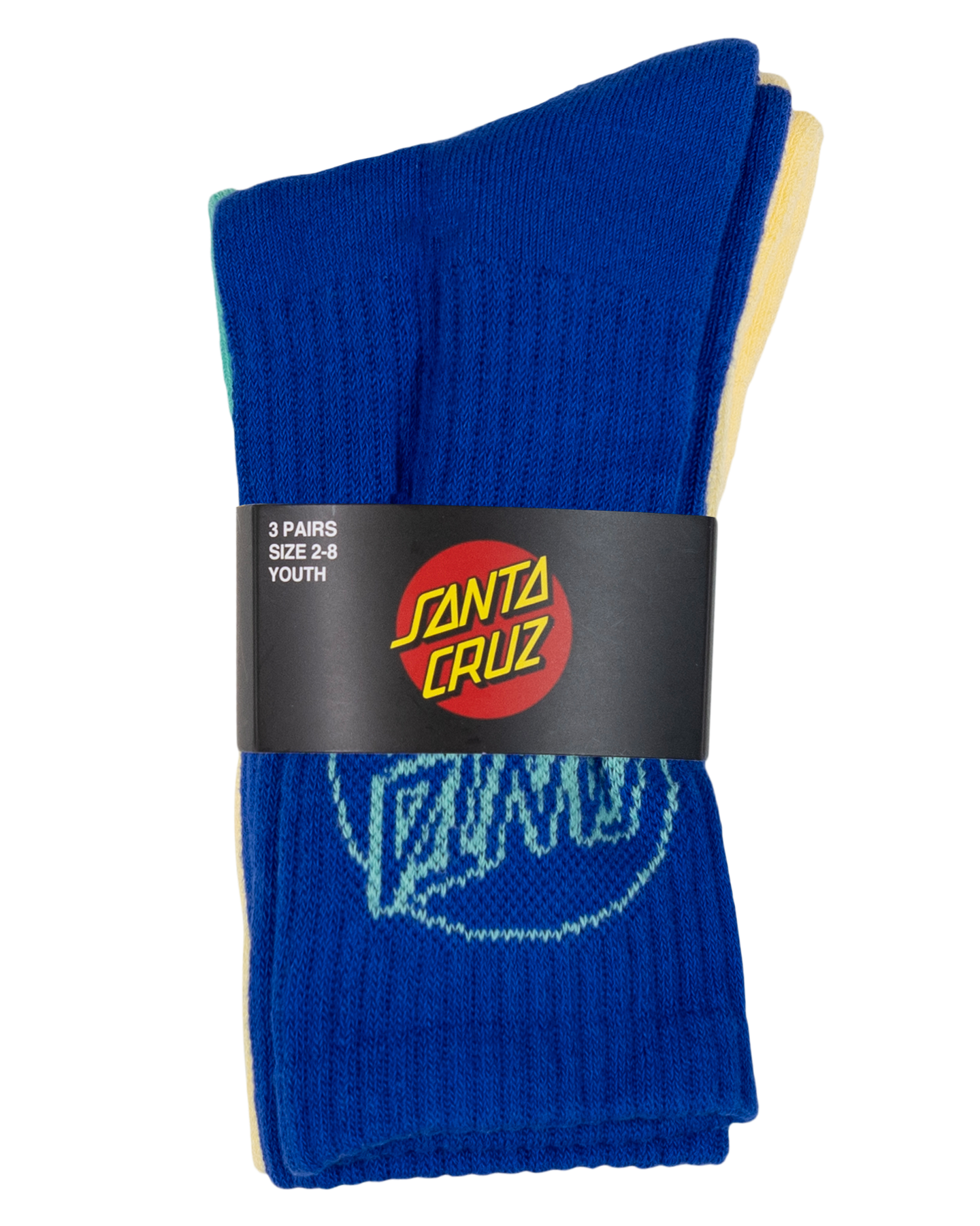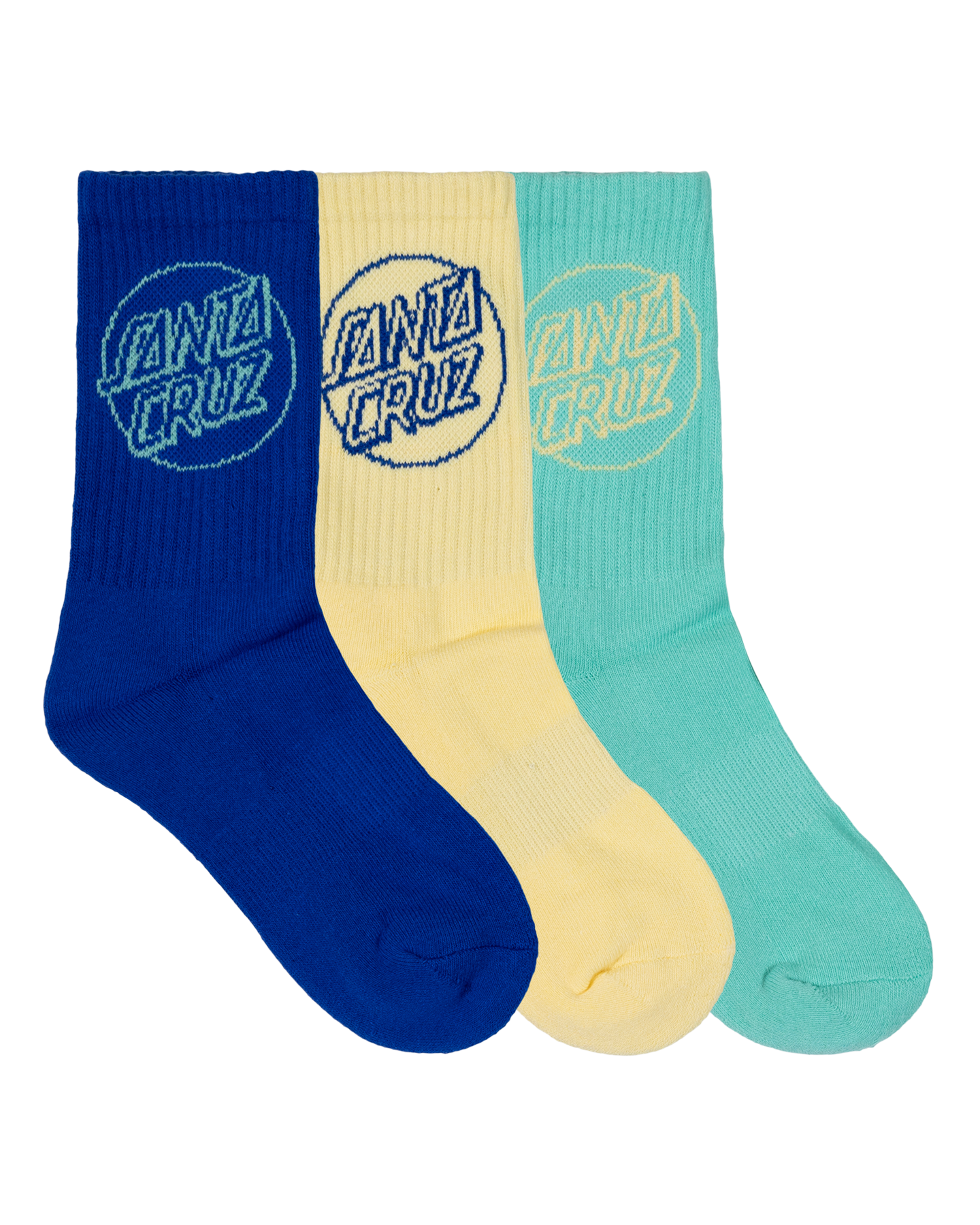 Santa Cruz Opus Dot Crew Sock 3 Pk (Yth 2-8) - Cobalt/Butter/Teal