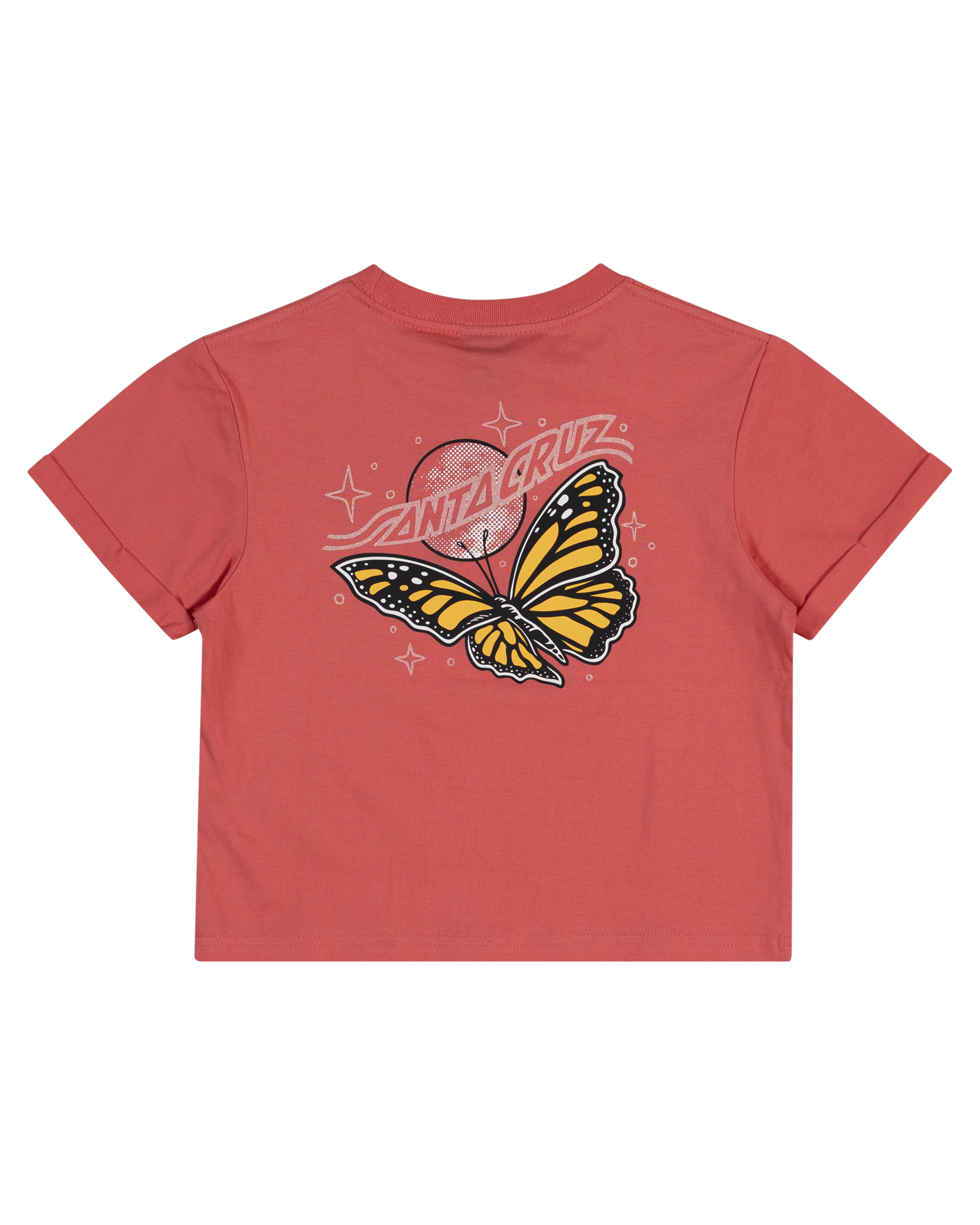 Santa Cruz Winged Moon Strip Centre S/S Crop Tee - Rose