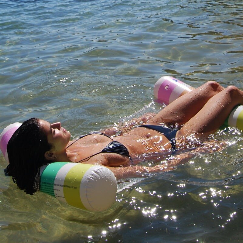 Relax into summer with the Pastel Gelato Bolster Hammock. Featuring a bold sunburst print and a confectionary colour scheme, this vintage-style inflatable is a must-have for a summer of fun. Designed to be used as both a seat and lounger, the Hammock Float features an inflated bolster on either side and a net centre to keep you cool, comfy and supported all summer long! Now lay back, relax and drift the day away to pastel perfection.