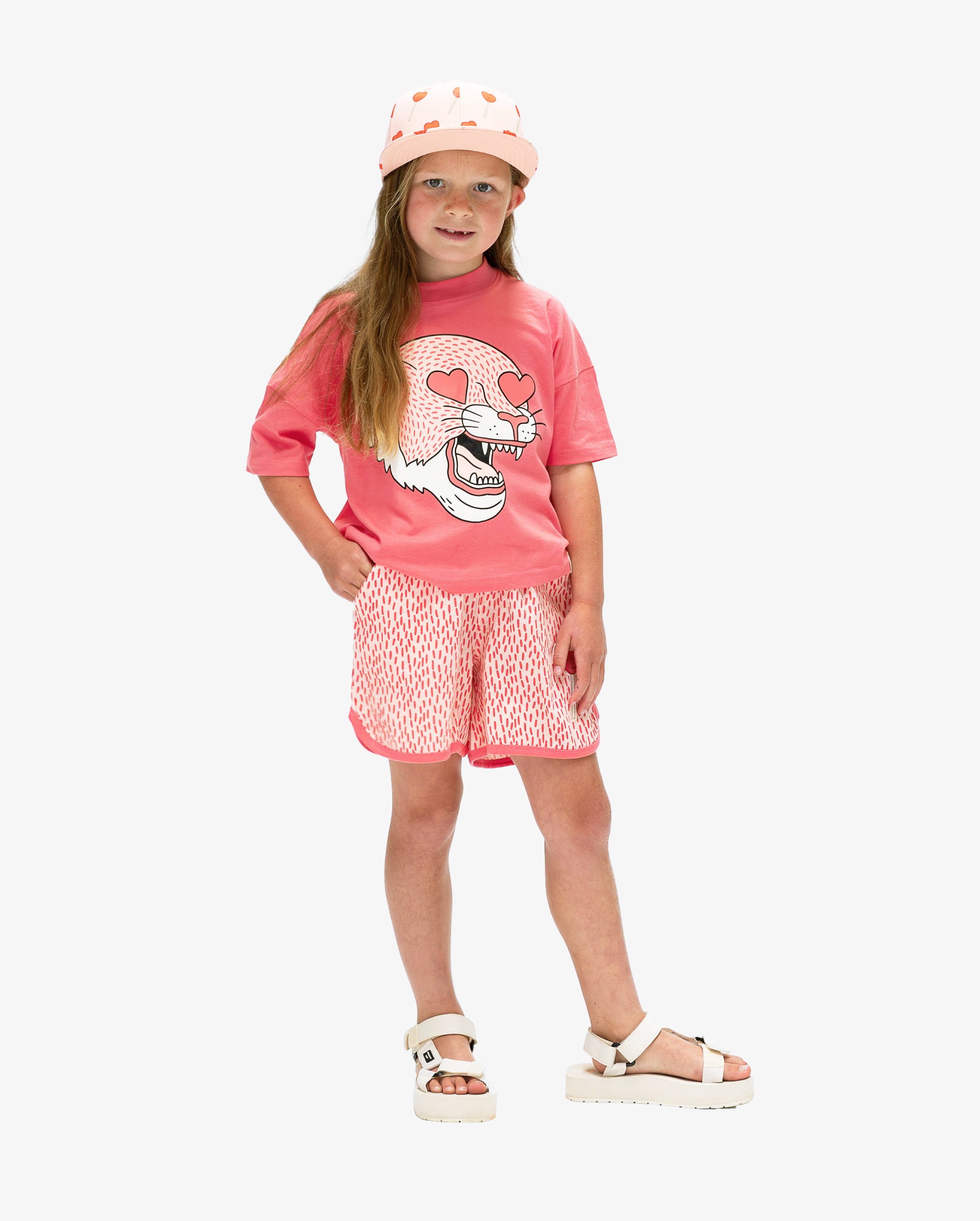 This girls tee has a straight hem and is cut to be relaxed and easy to wear. We recommend pairing this tee with our TGC bike shorts, or mix and match with your favourite garments from the Leopard Heart + Lollipop Collection.