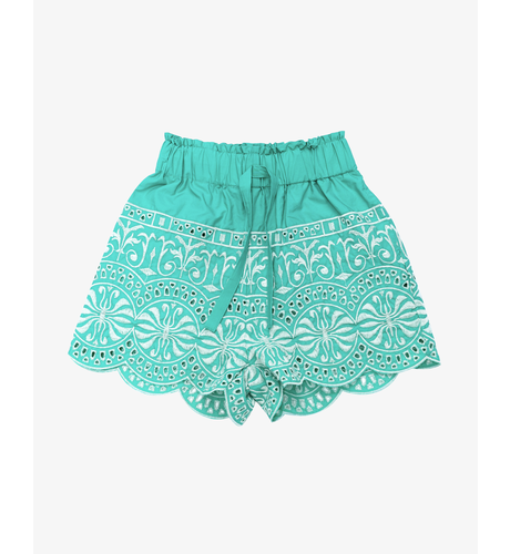 The Girl Club Teal Border Embroidery Shorts paired with the White Lace Tiger tee is a ‘wear on repeat’ summer outfit.