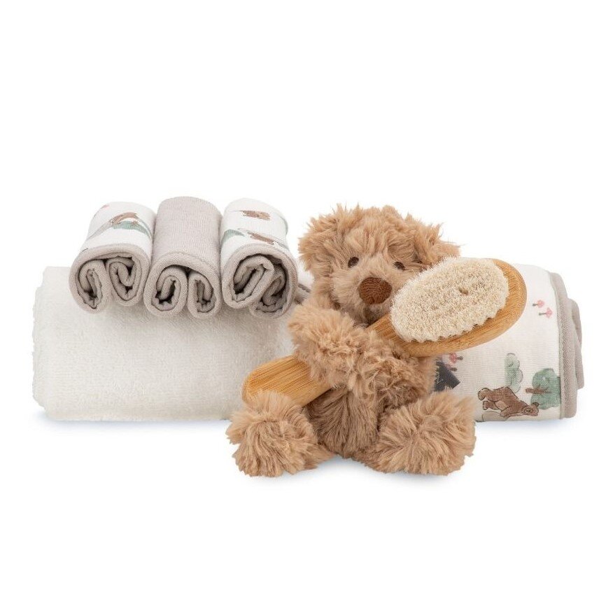 A sweet plush bear toy adds extra charm, while the gentle baby hair brush with natural goat’s hair bristles is ideal for caring for delicate newborn hair and scalp. Beautifully boxed, this set makes a practical and delightful gift for new parents or a useful addition to your own nursery collection.