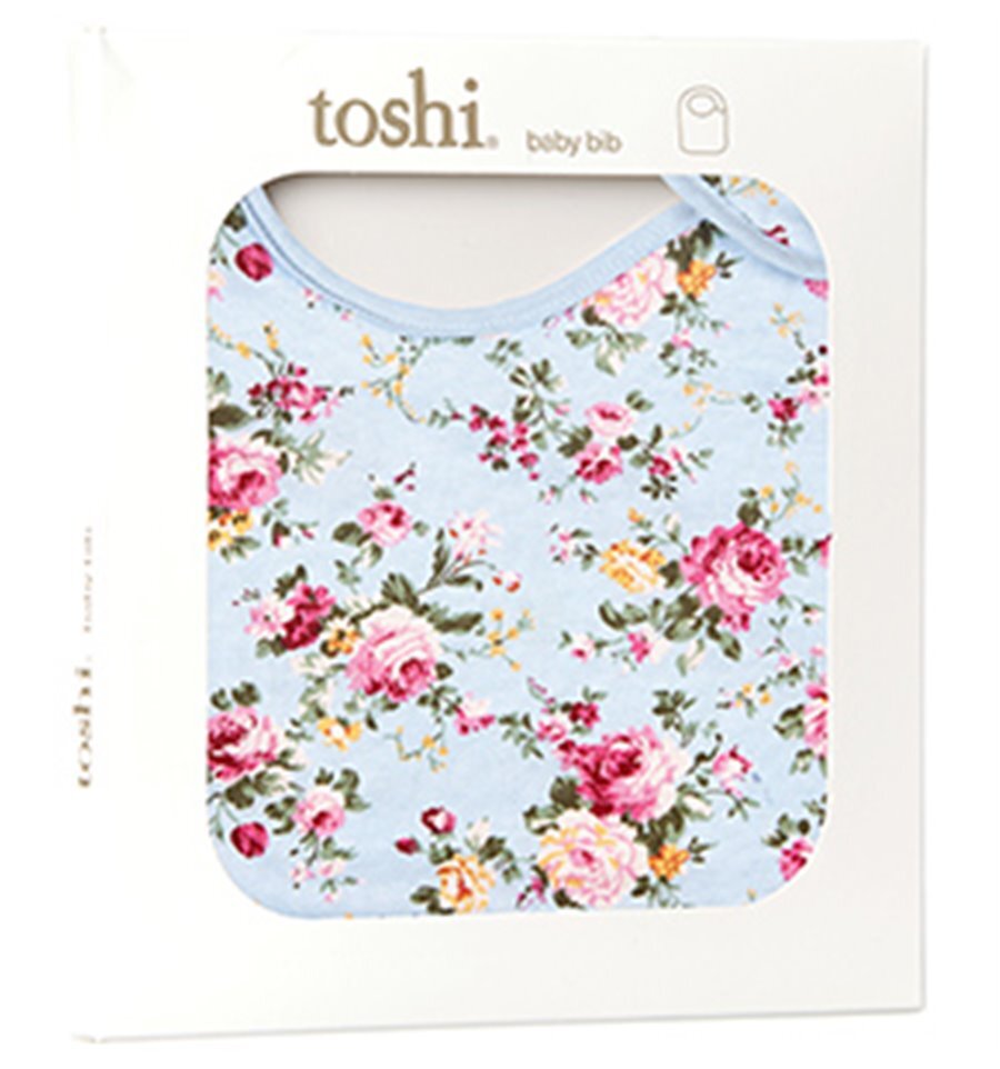 100% Cotton.  Press studs for adjustable sizing. Press studs open and close on side for convenient dressing.  Towelling on reverse for moisture protection.Toshi presents a range of the finest baby bibs in a selection of beautiful and captivating print designs and soft and nurturing fabrics.  These bibs are individually packaged in a quality gift box and are ideal as newborn gifts.