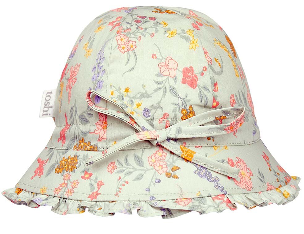 Toshi Bell Hat Isabelle is a flattering and feminine bell shaped hat. The baby sunhat is crafted from the finest quality 100% cotton. The head tie offers adjustable sizing and a chin tie secures the hat. The sunhat is fully lined for increased comfort. Pretty styling is created with a softly frilled border. Style Bell Hat Isabelle with a Toshi Romper and Bandana for an adorable summer look!