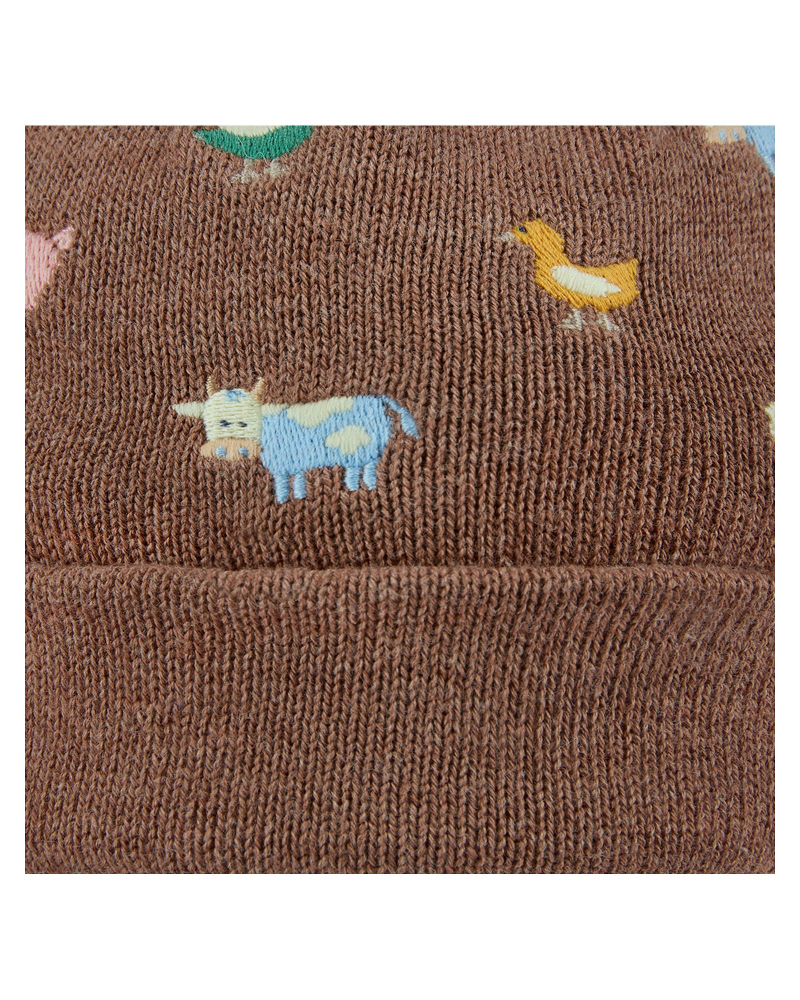 Designed in Australia, the Organic Beanie Mystical Farm Buddies features a beautifully textured melange knit in brown with artisan embroidery and playful embellishments. A classic pompom and roll-up ribbed border offer versatile styling and timeless appeal.