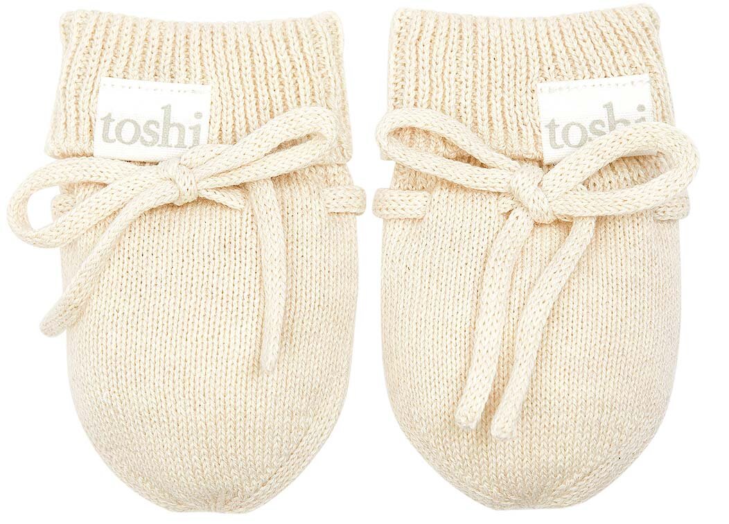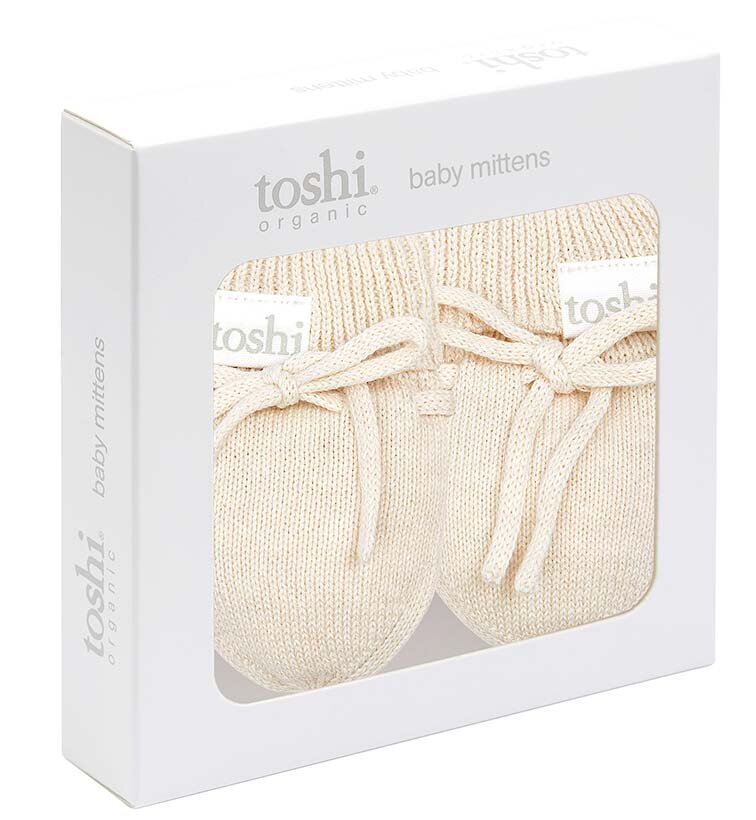 The adorable Toshi Organic Baby Mittens are crafted from the finest quality certified 100% organic cotton yarn. Organic certification ensures the mittens are gentle on your babies delicate fingers, as well as the environment. A melange yarn offers a level of refinement to these nurturing Toshi baby accessories. Carefully created with a ribbed knit cuff, Toshi mittens stay on while maintaining healthy circulation. The finely knited ties ensure a snug fit. The colour of this pair of mittens is Feather, a natural and earthy gender-neutral hue. Toshi Organic Mittens Marley are packaged in a quality gift box. Combine our mittens with Toshi Organic Baby Blanket Bowie and Baby Booties Marley for a precious newborn gift.
