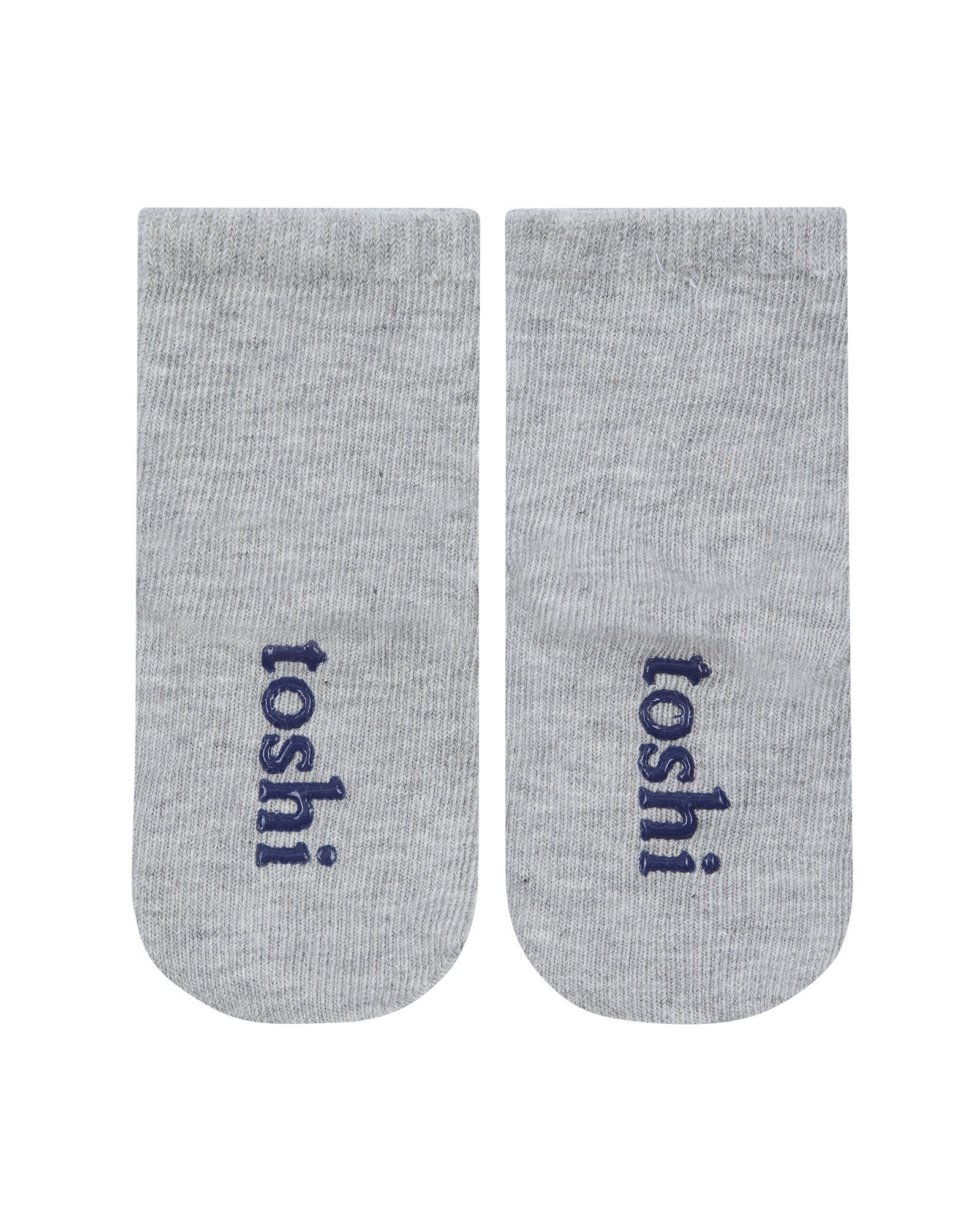 Toshi presents a beautifully curated collection of organic cotton baby socks. Crafting of the socks evolves from a blend of finely textured organic cotton melange yarn. Our cotton yarn is certified organic and this ensures Toshi socks are gentle on delicate baby feet, as well as our precious environment. The Toshi sock toe is hand linked, a quality crafting technique that enhances comfort for baby feet. Baby safety is supported with a skid resistant sole grip for sizes 6-24 mths. Toshi socks stay up while maintaining healthy circulation. Our sock height is ankle to mid calf. Adorn your baby’s feet with a sophisticated colour palette, refined design and intelligent functionality.