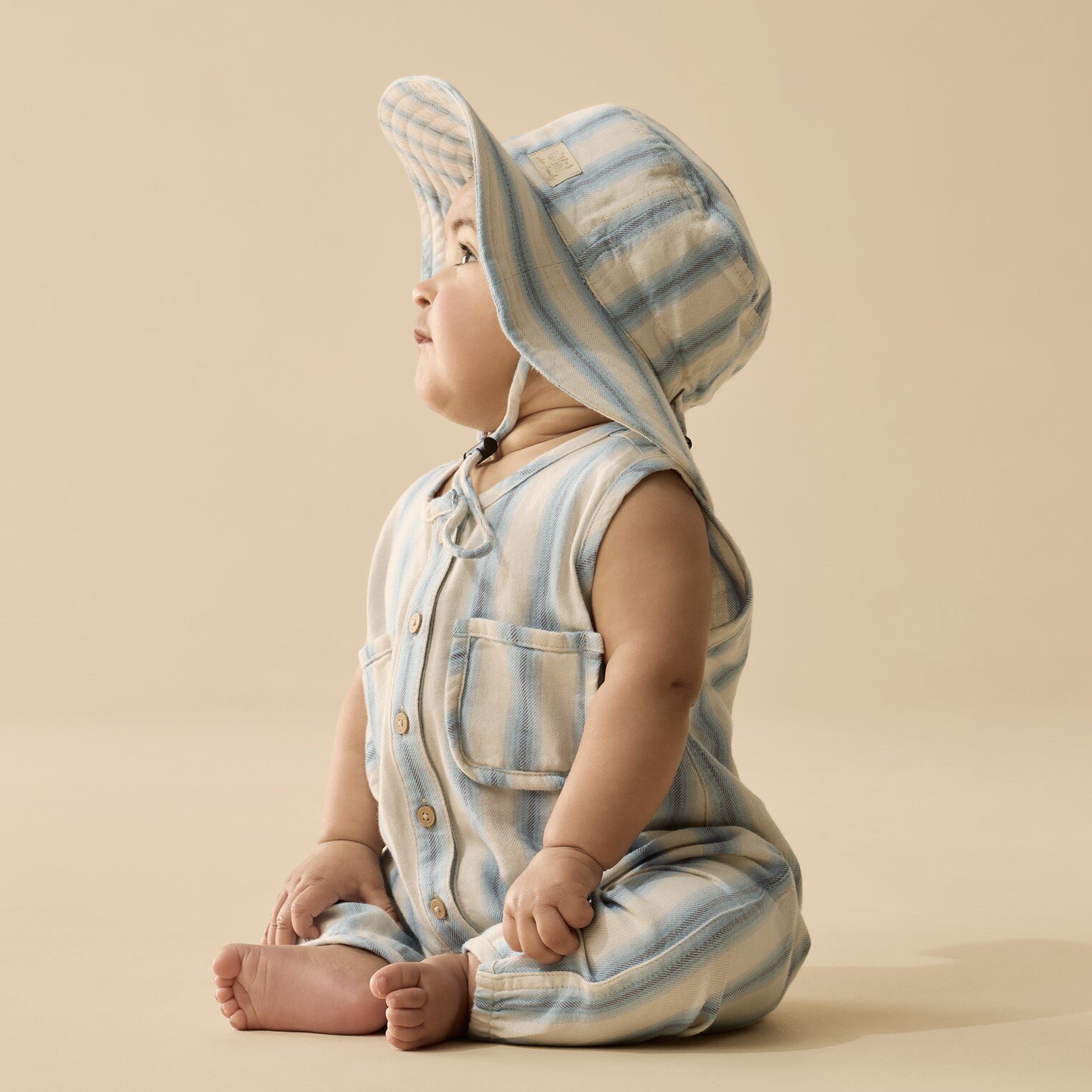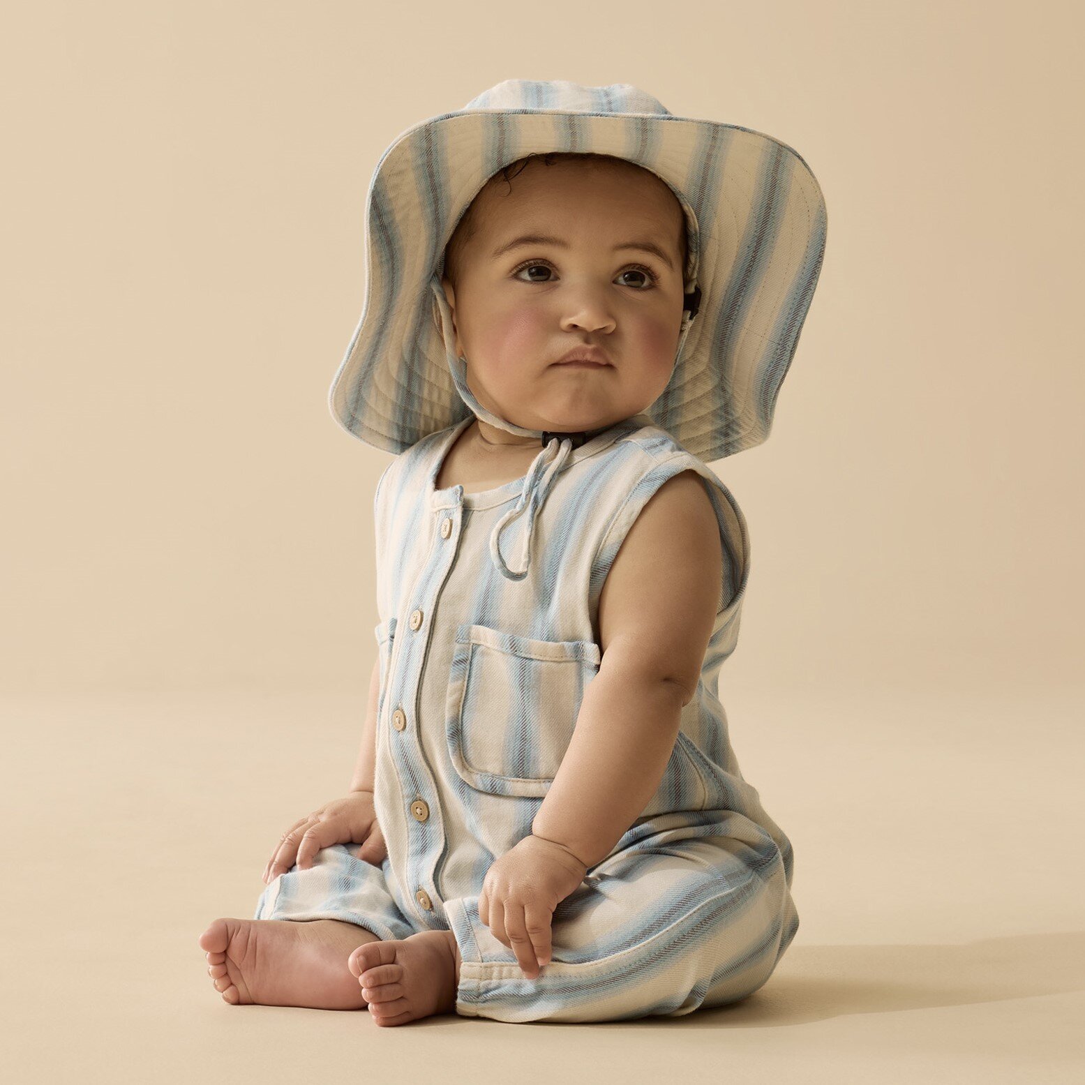 Key Features: Loose fit. Snaps at inleg for easy nappy changes. Full length leg. Soft washed. Mock wooden buttons on front placket. Made with organic cotton. Australian owned and designed. Packaged in a bio-degradable bag.