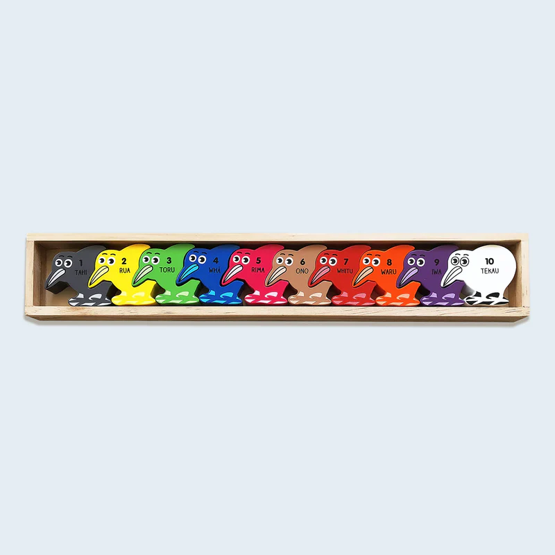 Learn numbers and colours in English and Te Reo! The numbers in numeral form & Te Reo are on the front, and when you flip the blocks over, the colours in both English & Te Reo are on the back. Perfect for little hands, this puzzle will make a wonderful gift for a little kiwi. Suitable 1yr+